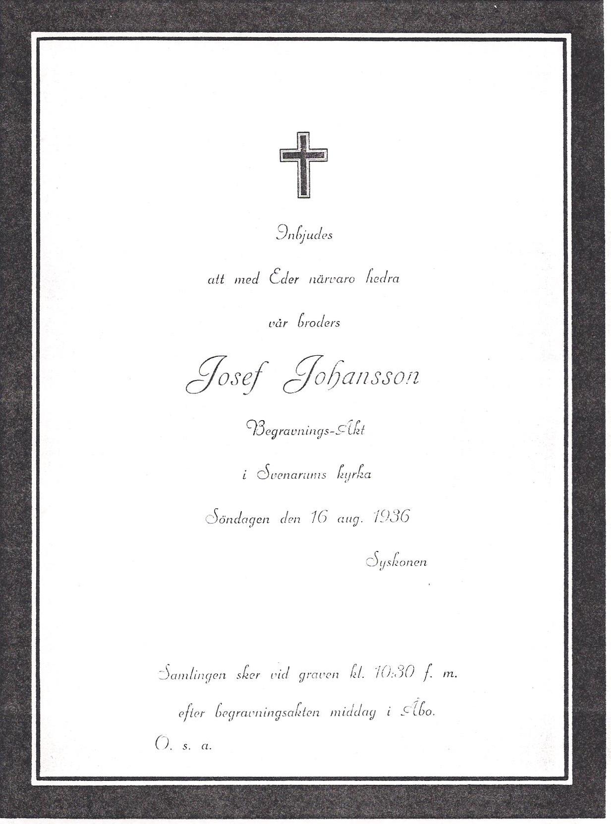 Josef was the second of Johan August and Sofias children. He was close to his 1,5 years older brother John.